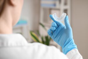 Female,Dentist,With,Occlusal,Splint,In,Clinic,,Closeup